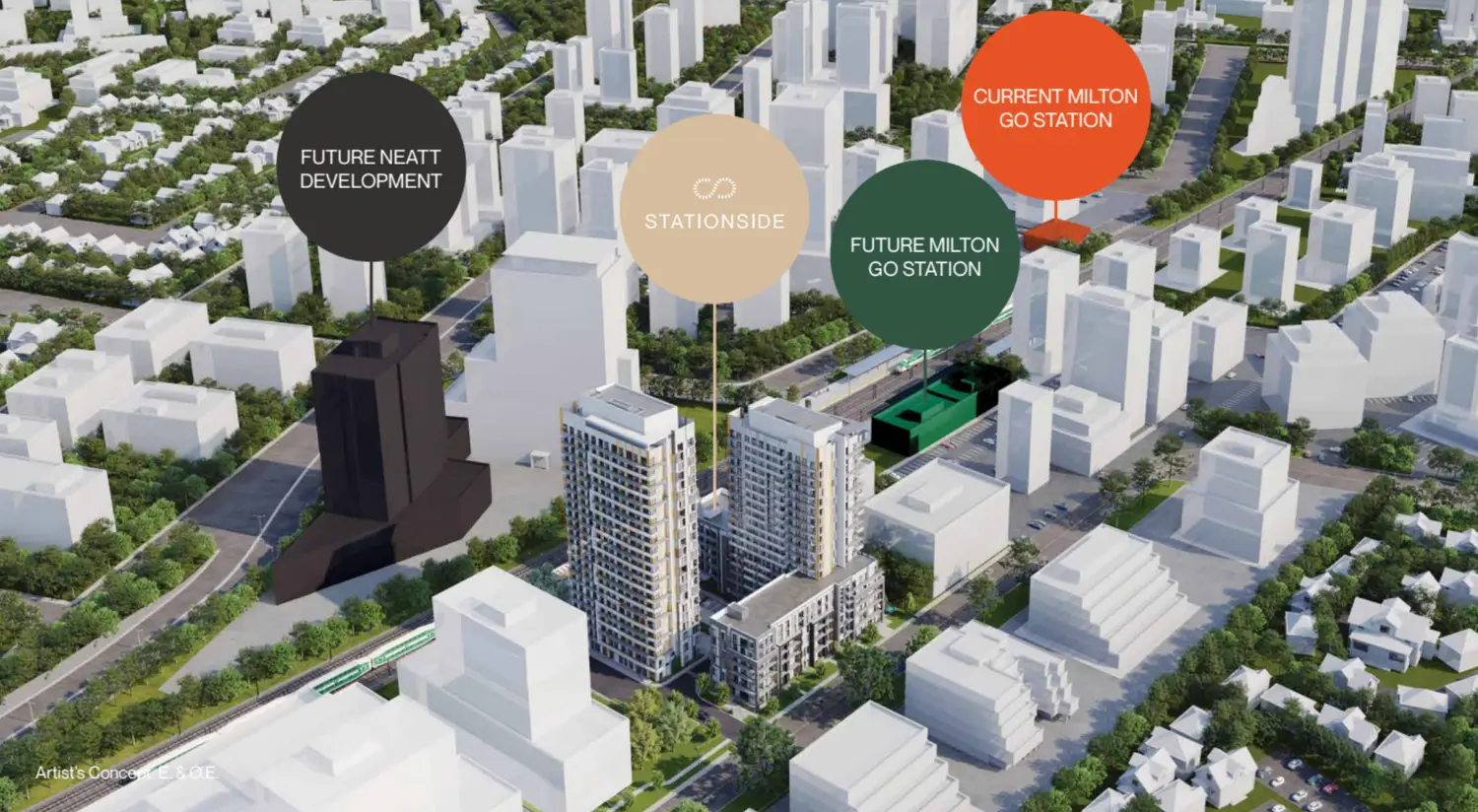 Stationside will be the first of many buildings within Milton's Future Mobility Hub. Projected to accommodate up to 25,000 new residents and 4,000 jobs the Mobility Hub connects Milton to the GTA and beyond, including travel to Toronto's Union Station in just over an hour. Stationside will also be steps from the upcoming GO expansion which will provide 15-minute rush hour service, and 30% more trips.